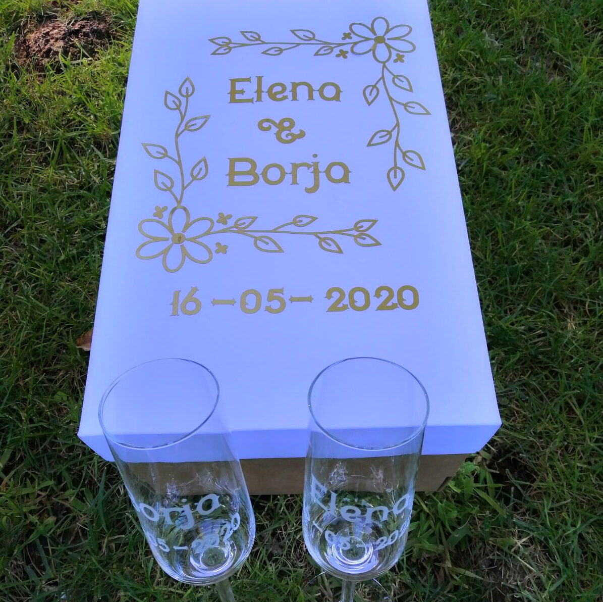 El pack está compuesto por 2 elegantes copas de cava personalizadas.